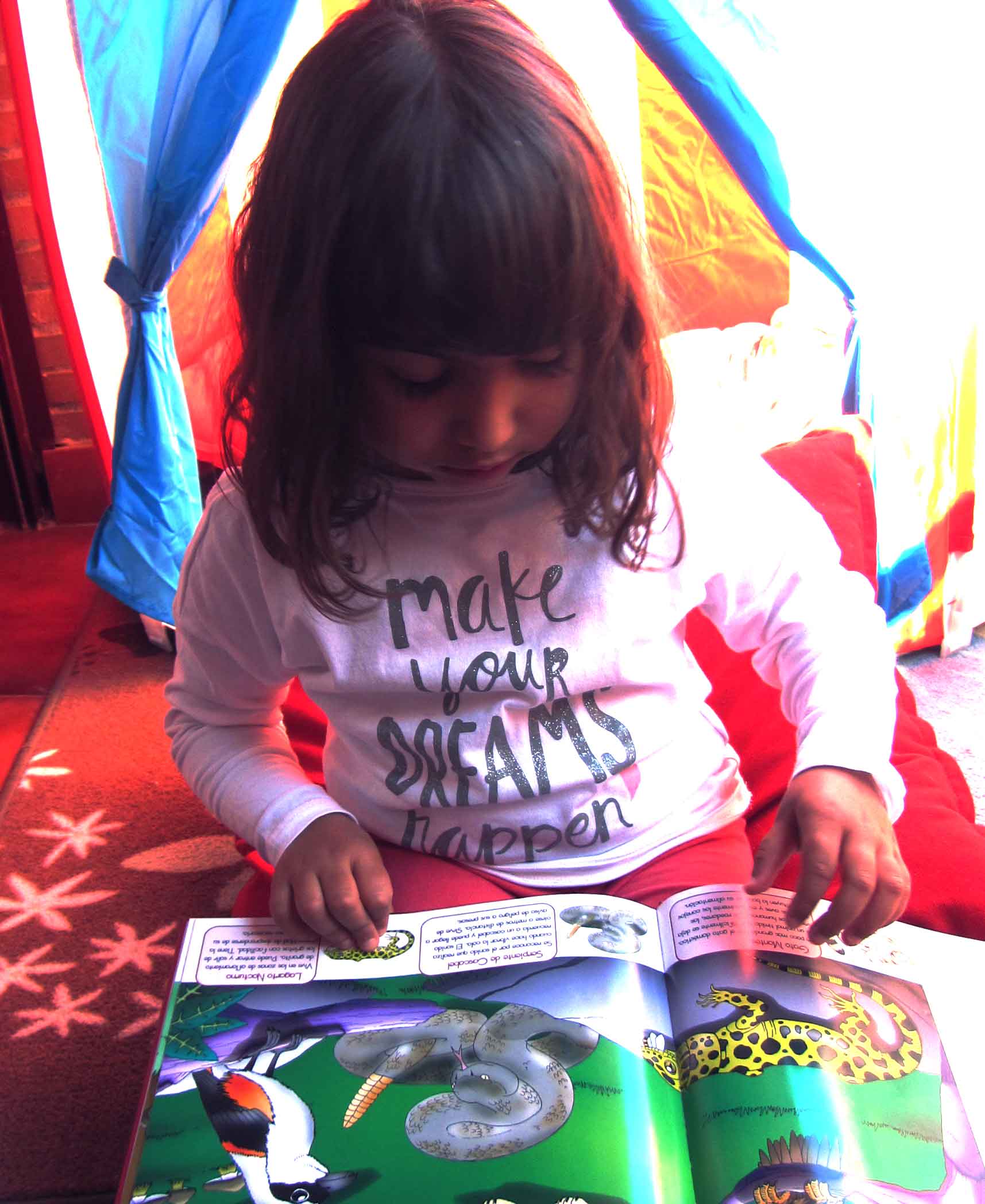 De los 3 a los 4 años: La variedad de libros que le podemos ofrecer se expande. Desde libros con grandes ilustraciones hasta libros más informativos (pequeñas enciclopedias adaptadas a los peques). Los niños/as comienzan a sentirse atraídos por cosas que van aprendiendo en la escuela o en casa: los colores, los números, las letras…