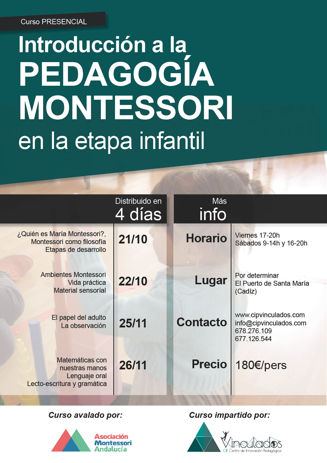 También disponemos de varios cursos Online de la Pedagogía Montessori http://www.cipvinculados.com/formacion/