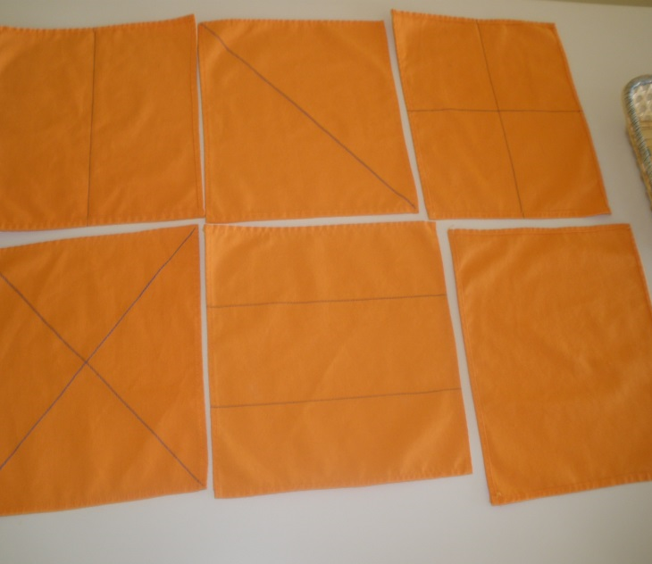 Para aprender a doblar paños, lo mejor: servilletas de tela marcadas con líneas guías.